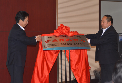 集團(tuán)公司副總經(jīng)理尚建選與建設(shè)集團(tuán)黨委書(shū)記、董事長(zhǎng)喬建華為建設(shè)集團(tuán)省級(jí)企業(yè)技術(shù)中心揭牌